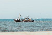 Vissersboot op Scheveningen met meeuwen van Anne Zwagers