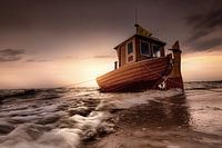 Boot aan zee in de sfeervolle Sonenaufgang op het strand van de Oostzeebadplaats Ahlbeck in Mecklenburg-Vorpommern in Nodrddeutschland.