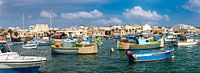 Panorama van kleurrijke vissersboten in de haven van Marsaxlokk Malta