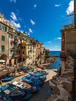Vissersboten in Riomaggiore aan de Middellandse Zee in Italië.