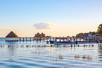Balacar light in het zuiden van Mexico en staat bekend om het prachtige turquoise achtige water. Tijdens ons bezoek aan dit kleine plaatsje zagen we deze vissersboten liggen rond het moment dat de zonder ging.