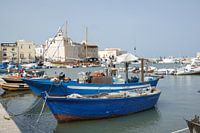 Trani is een Zuid-Italiaanse havenstad in de regio Apulië. Hier liggen traditionele vissersboten afgemeerd in de haven.