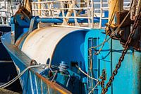 De schepen getekend door de uren op zee in zoutwater. De visserij is zwaar voor de schepen en de mannen. De touwen de kade de haven van IJmuiden. Het zonnetje het vrolijke blauw en de sporen van roest. Het leven van een schip op de Noordzee het zoute water en de wind en storm. Nu een mooie zonnige dag geeft een mooi beeld van de haven van IJmuiden. De vissersschepen afgemeerd een mooi werk voor aan de muur.