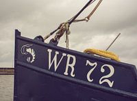 De boeg van de WR 72 mooi beschilderd. De trossen netjes opgeschoten. De lijnen van de staalkabels de beschildering van de garnaal op de boeg van de garnalen visser. Een scheepje uit de Wieringen vissers vloot.