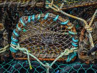 Zeekreeftfuiken op elkaar gestapeld bij The Quay, Cloonmonad, Westport, County Mayo, Ierland.