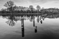 Kalm water met een optimale reflectie bij zonsondergang in het Zuid-Limburgse Heuvelland (Nederland).