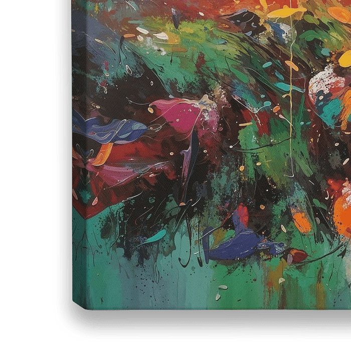 Ontdek de levendige magie van dit expressieve, abstracte schilderij en laat je meevoeren door de krachtige energie die het uitstraalt. Getooid in warme en levendige kleuren, komt dit kunstwerk tot leven met grove penseelstreken die elke beweging en emotie vangen. Dompel jezelf onder in een wereld van kleur en dynamiek, waar het kijken naar dit meesterwerk je overspoelt met een positief en energiek gevoel.