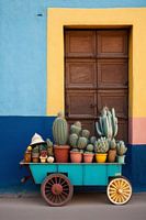 Dit werk is onderdeel van de serie en het album: "Viva Mexico". Met dit werk vieren we de fijne kleurencombinaties die je overal in Mexico tegenkomt. Je ziet een typisch klein marktkarretje vol met cactussen.