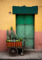 Dit werk is onderdeel van de serie en het album: "Viva Mexico". Met dit werk vieren we de fijne kleurencombinaties die je overal in Mexico tegenkomt. Je ziet een typisch klein marktkarretje vol met cactussen.