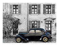 Een lekker nostalgisch plaatje - Een oldtimer in piekfijne conditie staat geparkeerd in een pittoresk straatje, zoals je die wel vaker ziet in Frankrijk. De oude Citroën Traction Avant is beter onderhouden dan de huisjes op de achtergrond. Het jugendstil / art deco luifeltje boven een van de voordeuren zet het beeld in de tijd. Het lijkt in alles op een originele oude foto.