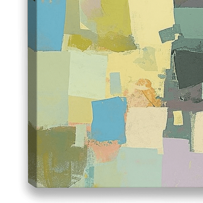 Vivid Art | Vrolijk Abstract Schilderij met Kleuren - Dit is een abstract schilderij met een speelse mix van levendige kleuren en geometrische vormen, die samen een dynamisch en vrolijk geheel vormen.
