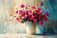 Vivid Petal Dance - Modern schilderij met levendige bloemen in vaas