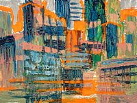 Het schilderij 'Vivid Skyline’ is een kleurrijk, abstract stadsgezicht vol levendige tinten oranje, blauw en groen. Het schilderij geeft de energie en dynamiek van een stad weer op een expressieve manier, met stevige verfstructuren en speelse lijnen die doen denken aan hoge gebouwen en straten vol licht. Een echte blikvanger die sfeer en beweging toevoegt aan elk interieur.
