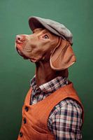 Met zijn charmante uiterlijk en elegante kap staat deze Vizsla trots als een gewaardeerde gast op een vintage soiree. Zijn glanzende, kastanjebruine vacht harmonieert perfect met de rustieke outfit, terwijl de grote, expressieve oren en sierlijke hoofddracht zijn onverstoorbare karakter benadrukken. Een echte stijlvolle metgezel!