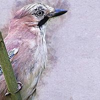Digitaal kunstwerk van een Vlaamse gaai. Het gaat hier om een mixed media kunstwerk waarbij diverse technieken zijn gebruikt.