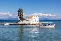 Vanaf het water oogt het Vlacherna-klooster als een drijvend eilandje vol witte rust. Toeristen arriveren per boot om even aan te meren bij deze plek vol symboliek en schoonheid.