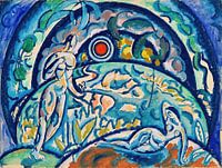 Vladimir Baranov-Rossiné (1888-1944) was een Russisch-Oekraïense schilder, beeldhouwer en avant-gardist die een belangrijke rol speelde in de kunst van het begin van de 20e eeuw. Hij was een pionier van de abstracte kunst en experimenteerde met verschillende stijlen, waaronder kubisme, futurisme en orfisme. Zijn werken combineren vaak geometrische vormen en levendige kleuren die beweging en dynamiek uitdrukken. Naast schilderen stond hij ook bekend om zijn uitvinding van "optophonics" - een machine die muziek en licht transformeerde in een synesthetische ervaring.
