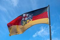 Flag of Saarland flying in the wind with a blue sky background.deelstaat, state, land, waving