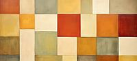 Vlakken van Rust | Abstracte Kunst - Het werk bestaat uit een raster van abstracte, gekleurde vierkanten die variëren in tinten van rood, geel, en groen naar meer verzadigde aardetinten en subtiele pastels, resulterend in een harmonieus kleurenpalet. De kunstenaar speelt met kleurovergangen en vlakken om diepte en textuur te creëren,…