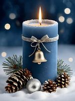 Een brandende kaars omringd door verse sneeuw.