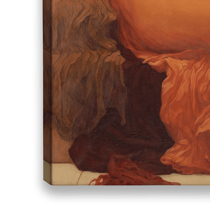Vlammende Juno (Flaming June), Frederic Leighton, een impressionistische weergave van een slapende jonge vrouw in een oranje gewaad.