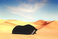 In het kunstwerk "Vleugel in de woestijn" wordt een intrigerend contrast onthuld tussen een verlaten concertvleugel en de uitgestrekte woestijnomgeving eromheen. Deze tegenstelling, die het beeld zo boeiend maakt, trekt direct de aandacht.