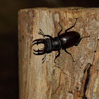 Vliegend hert mannetje in de avondschemering wachtend op een vrouwtje