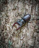 De grootste kever van Nederland en Europa kan je in de maanden juni en juli tegenkomen op de Veluwe. Het mannetje op de foto heeft grote scharen.