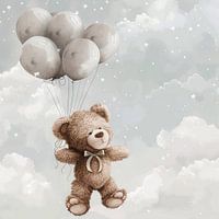 Deze betoverende muurschildering toont een pluizige teddybeer die met een handvol grijze ballonnen door een sterrenhemel vliegt. De zachte, pastelkleurige wolken en het gedetailleerde ontwerp creëren een rustgevende en dromerige sfeer, ideaal voor kinderkamers of kinderdagverblijven. Perfect voor ouders die een liefdevolle en fantasierijke omgeving voor hun kinderen willen creëren. Een betoverende blikvanger die kleine dromers meeneemt naar een wereld vol magie en geborgenheid.