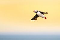 Net voordat de zon ondergaat nog snel wat avondeten regelen voor de thuisblijvers die in het holletje zitten waar hij zijn nest in heeft gemaakt.