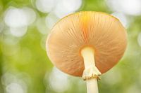 Deze vliegenzwam stond bovenaan de rand van een sloot waardoor ik er goed onder kom komen. De bokeh kreeg ik doordat het licht door het bladerdak van het bos scheen op de achtergrond.