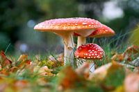 Vliegenzwam gefotografeerd vanuit een laag standpunt, het zogenaamde kikkerperspectief.