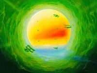 'Flugversuche' - 60 x 80 cm - acryl / houten paneel - schilderij van Silvian Sternhagel / jaar 2003