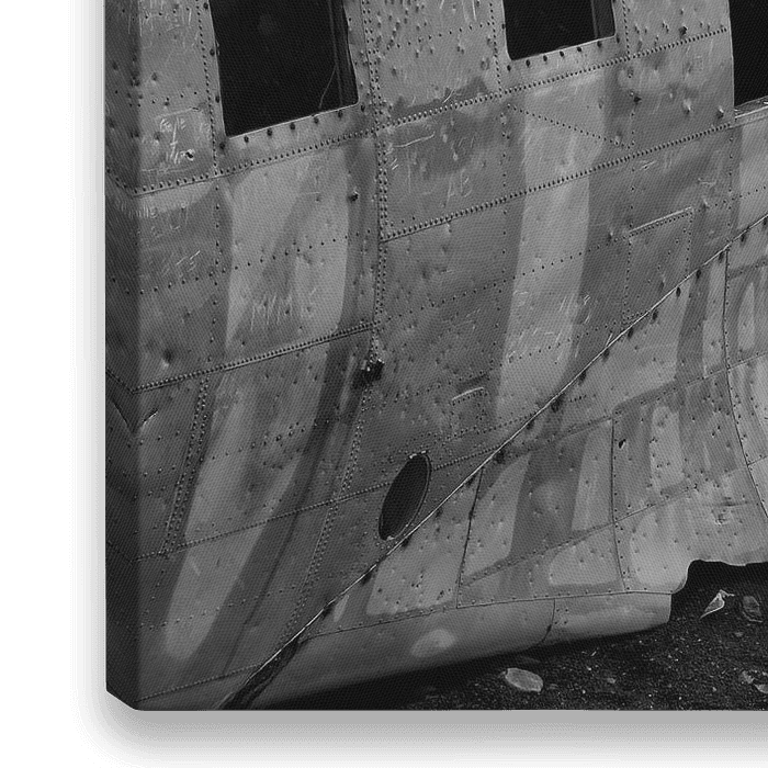 Het wrak van het in 1973 gecrashte Amerikaanse marine vliegtuig op het zwarte strand van Sólheimasandur in zuiden van IJsland.