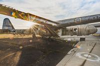 Een fel zonnetje gepakt bij deze verlaten vliegtuigen. Twee gevechtsvliegtuigen mooi opgesteld.