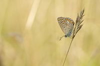 Prachtig Icarusblauwtje in het laatste avondlicht met een mooie zachte achtergrond. Het uur voor de zonsondergang noemt men ook wel het "gouden uurtje"