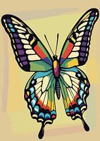 Een vlinder neemt de vlucht in dit opwindende pop-artportret, waar de natuur en gedurfde stedelijke kunstzinnigheid elkaar ontmoeten. De vleugels zijn wijd uitgespreid in smaragdgroen, neonpaars en stralend oranje, elk gemarkeerd door grafische patronen die doen denken aan stripverhalen. Een spetterende contrasterende achtergrondkleur zorgt ervoor dat het onderwerp van het doek springt en creëert direct een visuele impact. Dit werk symboliseert schoonheid en verandering en voegt een dosis inspiratie en positiviteit toe, waardoor het perfect is voor kunstverzamelaars of iedereen die hunkert naar een vleugje kleur in hun interieur.