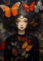 Prachtig meisje met kleurrijke vlinders om haar heen