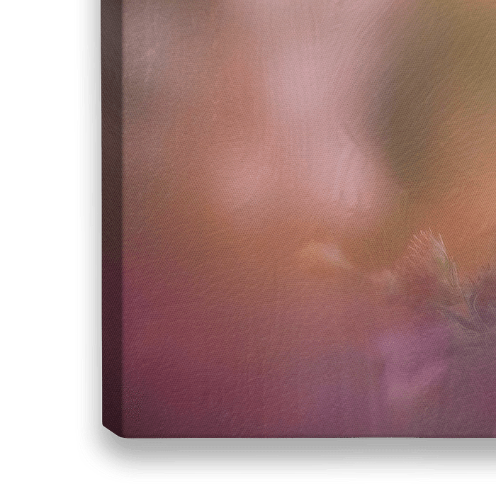 Een sierlijke vlinder rust op tere roze bloesems, omhuld door een dromerig spel van pastelkleuren. Het zachte licht en de poëtische sfeer brengen rust en verfijning in elke ruimte. Prachtig als blikvanger in groot formaat, waar natuur en kunst samenkomen.