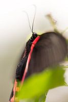 Deze mooie zwart met rode vlinder is een bron van rust... Het geweldige bokeh trekt je oog naar het oog van de vlinder en laat je wegdromen.
