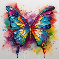Dit werk van een vlinder vangt de delicate schoonheid van deze sierlijke wezens op een unieke en levendige manier. De gedetailleerde vleugels tonen een prachtig patroon van kleuren en vormen, die direct de aandacht trekken en een gevoel van verwondering oproepen. De fijne lijnen en zachte tinten benadrukken de lichtheid van de vlinder, waardoor het werk een bijna dromerige sfeer krijgt.