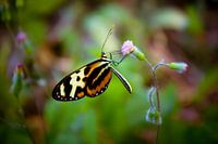 Tropische vlinder (Tiger Longwing) (Heliconius hecale) op lila bloem.