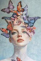 Een elegante weergave van vrouw met kleurige vlinders.