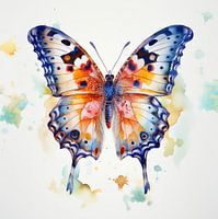 Deze aquarel toont een prachtig gekleurde vlinder in verfijnd detail.