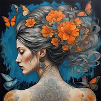 Schilderij Vlinders en Bloemen No. 36.61 - een schilderij uit een reeks schilderijen over dromen, kleuren, vlinders en bloemen.