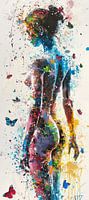 Vlinders - Dit stuk is een bruisend eerbetoon aan de stedelijke street art scene, waarin de explosie van kleur en beweging een vrouwelijke figuur tot leven brengt. De dynamische, spat- en druptechnieken zetten een energiek tableau neer, dat speelsheid en levendigheid uitstraalt, verrijkt met fladderende vlinders die als kleurrijke accenten door het doek dansen. Het is een feest voor het oog dat moeiteloos moderne flair aan elke ruimte zou toevoegen.