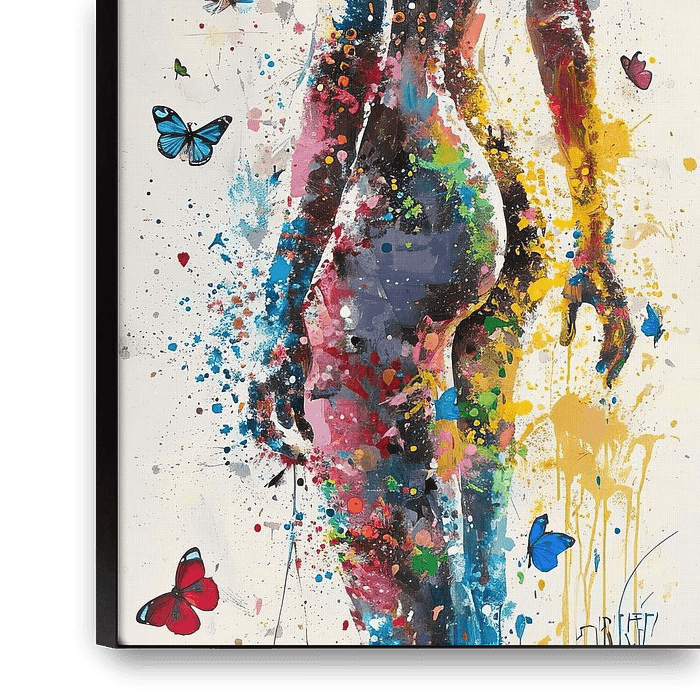 Vlinders - Dit stuk is een bruisend eerbetoon aan de stedelijke street art scene, waarin de explosie van kleur en beweging een vrouwelijke figuur tot leven brengt. De dynamische, spat- en druptechnieken zetten een energiek tableau neer, dat speelsheid en levendigheid uitstraalt, verrijkt met fladderende vlinders die als kleurrijke…