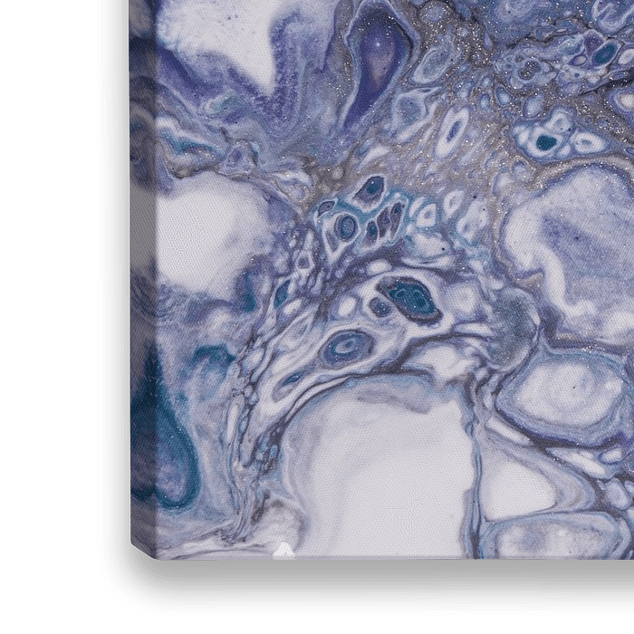 Koop dit abstracte kunstwerk Vloeibare kleuren: Dynamisch blauw, paars en turqouise van Marjolijn van den Berg op canvas, aluminium dibond, (ingelijste) fotoprint, behang en ArtFrame, op maat geprint in Fine-Art kwaliteit.