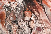 Abstract werk van verschillende vloeistoffen (waaronder verf met kleine glittertjes en "vintage" verf ) die over het canvas "stromen". (abstract) Hiervan is een foto gemaakt en bewerkt. De meest gebruikte kleuren in dit werk zijn bruin oranje wit en zwart.