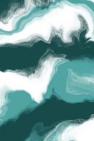 Abstracte minimalistische illustratie van vloeiende vormen in een combinatie van donkerblauwe, turquoise tinten. De vormen zijn gedraaid en geven een vloeibaar effect. De vormen en kleuren zijn geïnspireerd op de zee of een stromend water.